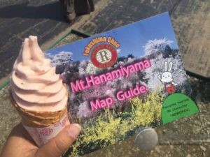 Setelah berjalan satu jam, Anda bisa mencoba kios makanan Hanamiyama di sekitar lereng. Jangan lupa untuk mencoba es krim Sakura. Es krim ini terbuat dari Sakura. Yummy…