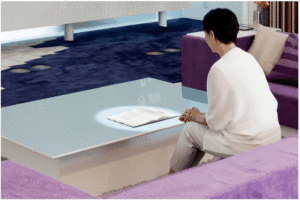 Meja baca ini memiliki keunikan tersendiri. Jika Anda meletakkan benda di atas meja, benda itu akan diterangi. Layarnya bisa berubah menjadi pesawat televisi, namun juga bisa menampilkan buku atau video dan gambar yang tersimpan pada perangkat.